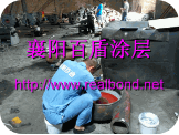 3、按规定配比称量BD7045渣浆泵涂层并混合均匀;将混合均匀的材料涂覆敷于待修部位,并用专门制作的工具将胶层表面修平整,达到表面平整,光滑过渡;