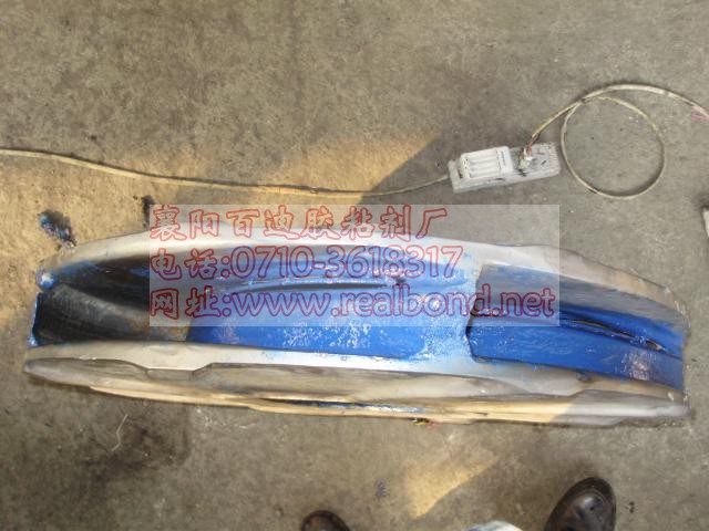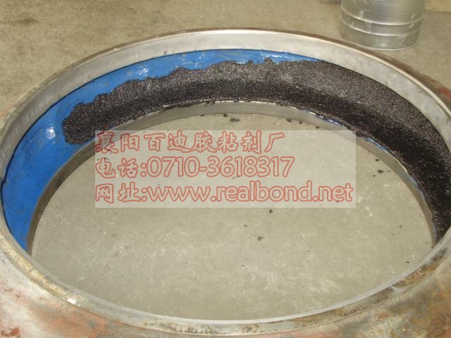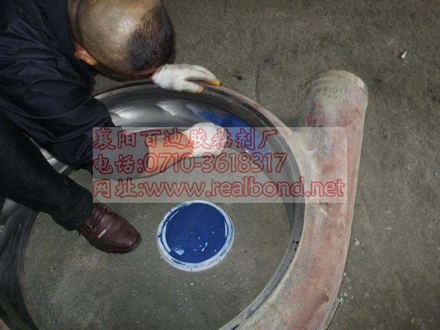 施工工艺:1.清理并打磨待修工件需修复部位;2.配置BD426T专用底涂并刷涂于待修部位;3.配置BD7041超级耐磨涂层并涂覆敷于待修部位,用橡皮锤敲击密实,并用专用修圆工具修整表面,达到表面平整,光滑过渡;4.表面修平整后,用BD426T在表面均匀涂抹一层做面涂;5.常温固化24h,温度低于15℃时应适当加热促进固化。